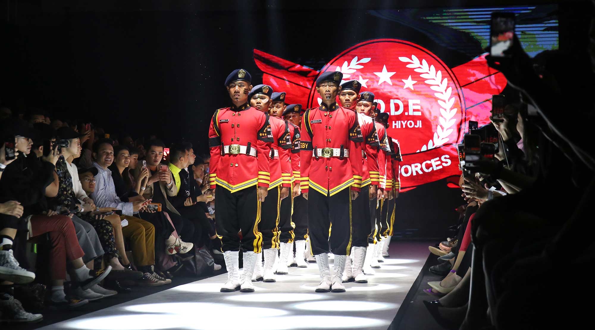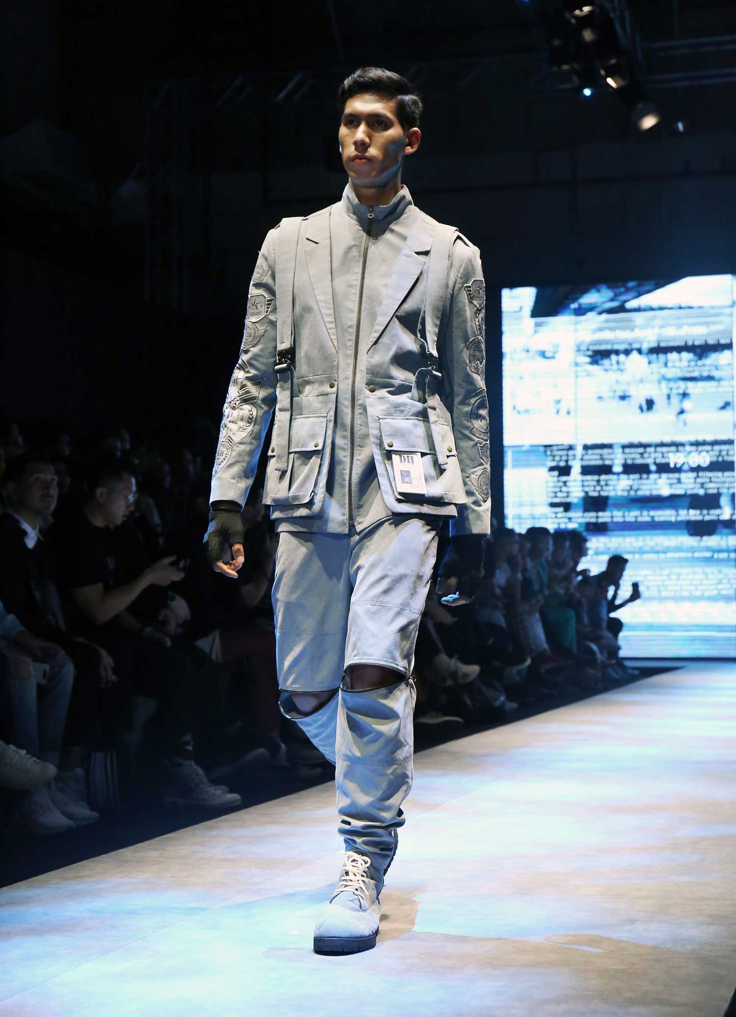 Danjyo Hiyoji knew how to surprise that impress the audience with the collection inspired by military silhouette. The show began with a brief performing arts, presentation by high school students. Through this particular theme, Danjyo Hiyoji accomplished the Spring / Summer 2020 titled "Code". They brought heroism to the urban and street scene in several collections incorporated vest, jacket and oversized longpants with the resembling character of military embroidery.