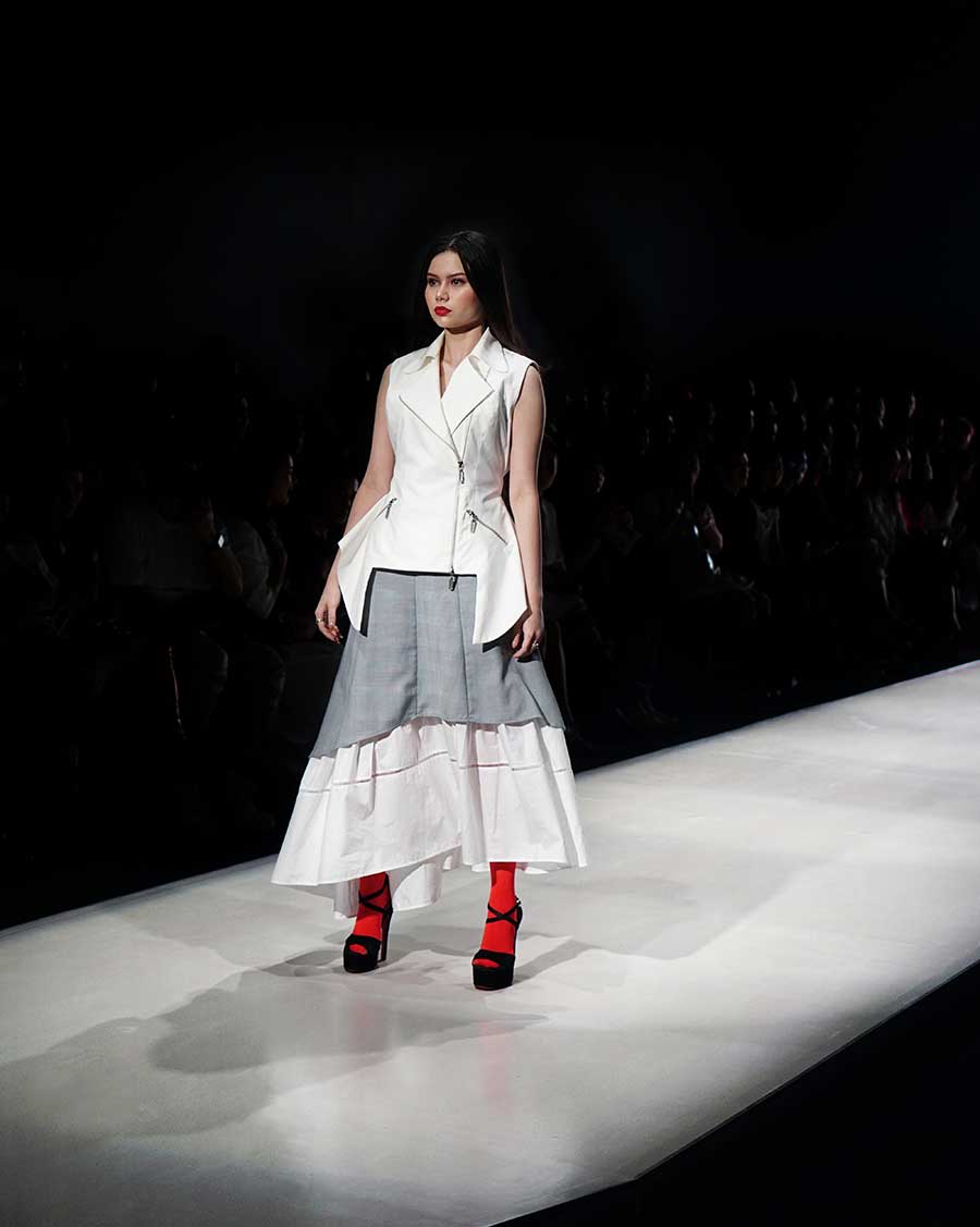 Wilsen Willim opened the parade of Plaza Indonesia Fashion Week 2019 with the concept of ambiguity in duality; the juxtaposed of formality and casualty, the border of masculinity and femininity. Structured cutting with fluid silhouette in the choice of soft yet statemented dress unmistakably portrayed the whole story. But the show was not only about fashion. In a collaboration with Yayasan Jantung Indonesia, Wilsen also try to convince the audience to put their awareness about heart care day.