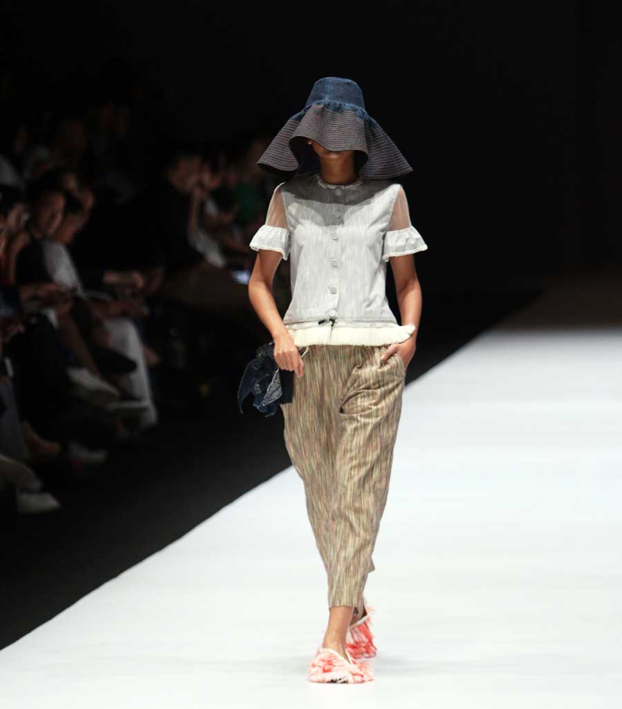 News were spreading across the internet while Toton marked its appearance in Jakarta Fashion Week 2019. And the conversation across social media crowds even brought wider vibes. It is no wonder why the conversation crowded. For the 2019 collections, Toton exercised raw and recycled material and fused it with floral twist. Bucket hat became attention grabber during the show. Toton designed it beautifully as an asymmetrical pattern crafted with raffia and raw denim.